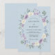 Soft watercolor blooms in shades of lavender, cream, and dusty blue create a tranquil atmosphere. Delicate roses and lush hydrangeas are nestled among silvery eucalyptus and sage green foliage. This design evokes a sense of timeless elegance perfect for a whimsical seasonal event. The palette is airy and light, blending cool tones with warm ivory accents.