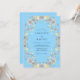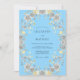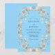 This design features a vibrant azure blue background adorned with a delicate border of roses in muted grey and soft white tones. Bright yellow accents and golden-hued buds provide a cheerful contrast, creating a fresh and airy aesthetic. Perfect for a spring or summer event, the botanical arrangement offers a sophisticated and timeless look.