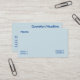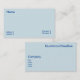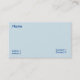 Business card in Azureish White ( #D2E5EB ) ,a light shade of blue solid colour background and deep blue fonts .Simple and trendy design by Alma Wad .Personalise both sides of now .It comes 100 in a pack .