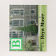 B is for Bryn Mawr! Here is a photo of the marvelous architecture of Bryn Mawr's Old Library. Taylor green in front. Stone portico. Collegiate Gothic architectural style. Massive paneled windows allow abundant sunshine to fill the hall. A green letter B in the style of an alphabet letter block superimposed the the corner of the image.