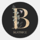 Letter B monogram floral. Letter B in golden brown texture accented with green watercolor compound leaves and berries and melted gold splashes. Personalised with name in matching font.