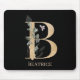 Letter B monogram floral. Letter B in golden brown texture accented with green watercolor compound leaves and berries and gold dust. Personalised with name in matching font.