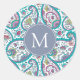 Beautiful Persian Boteh Paisley pattern in customisable round sticker with monogram on grey round shape. Matching products sticker, favour box and more...
