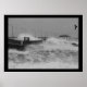 Photographer Jon Sullivan captured this powerful shot of hurricane waves lashing a bridge and café. This black and white fear provoking photograph expresses the eternal force of the sea during this severe weather storm and creates a feeling of uncertain fate.