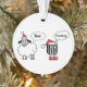 Funny and original Christmas cartoon of a sheep and humbug candy with text "Baa...humbug" on Christmas ornament with snowflake pattern on reverse.