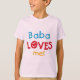 Baba Loves Me T-shirts, cards, stickers, bodysuits bags, and more with colourful red, yellow, and blue text and heart design. These Baba Loves me apparel and gift items will make baba smile!