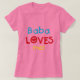 Baba Loves Me T-shirts, cards, stickers, bodysuits bags, and more with colourful red, yellow, and blue text and heart design. These Baba Loves me apparel and gift items will make baba smile!
