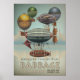 Vintage looking poster is an original digital piece of artwork by artist K.A.Grayce and available exclusively here. Featuring a trio of fantasy hot air balloons, this vintage-inspired travel poster invites tourists to visit the city of Babbage aboard an airship. A great focal point statement piece for any lover of aircraft, flying, fantasy flying machines, steampunk or vintage travel posters.