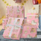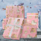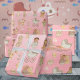 Baby wrapping paper featuring watercolor-painted international babies with animals, prams, bottles, rubber ducks, blocks and stuffed animals on a pink ombre background.