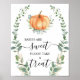 This baby shower babies are sweet please take a treat poster features a watercolor pumpkin and fall greenery gold foliage wreath.