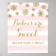 Babies are Sweet please take a treat candy bar sign poster for baby shower in pink and white stripes pattern with gold snowflakes.