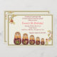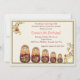 A charming invitation for a little girl's birthday celebration featuring five Babushka, nesting dolls.
