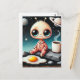 A funny baby Alien dressed in pink pjs with a morning coffee and a fried egg sitting on a rock