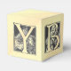 This cube style favour box is designed to resemble the old fashioned children's alphabet blocks. Vintage French designs from a children's alphabet spell out "baby", with illustrations of girls and boys performing an activity that starts with each letter. B is for broom (or "sweep" in French), A is for artist and Y is for yacht.