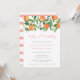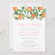 Watercolor oranges, blossom and glossy green leaves decorate these stylish "baby & bubbly" baby shower brunch invitations.