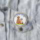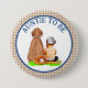 Brown and Blue personalised boy's Auntie to be button with a baby boy sitting next to a dog with a baseball theme.