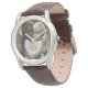 The watch looks really great! Very sharp and well done. The leather band is really nice, though for a man's watch I think it should be longer. Unfortunately, it isn't big enough for my husband's wrist but I will get a replacement because he is very excited to wear it!
