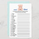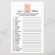 The "Baby Animal Naming Game Sheet" is an adorable baby shower activity where guests can showcase their knowledge of the animal kingdom. It features a list of 20 animals, and participants must write down the term for each animal's baby. At the top, a cuddly teddy bear image sets the baby-friendly theme. This game is not only a delightful challenge for animal lovers but also a sweet nod to the guest of honour's little one on the way. It's a perfect icebreaker and a great way to add some educational fun to a baby boy's shower celebration.