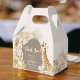 Baby lion and baby giraffe safari animals yellow gold brown boho dried flowers baby shower thank you favour box.