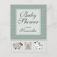 Baby shower invitation featuring green with white polka dots and grey stripes with these adorable cartoon baby sheep, elephant, and zebra animals. Impress your guest with this darling invitation. Message me if you need assistance or have any special requests.