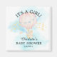 Beautiful watercolor baby animals pink hot air balloon ride baby shower magnet favor featuring an elephant, giraffe, fox & bunny for a baby girl.