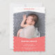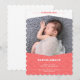 Introduce your little baby to the world with this cute coral birth announcement with scalloped edges.