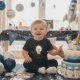 Celebrate a little one's first birthday with this adorable astronaut-themed graphic tee! Featuring a charming watercolor illustration of a baby in an astronaut suit gazing at the moon, surrounded by golden stars and the phrase 'One Small Step for One Giant Celebration for Turning ONE'. This design is perfect for a space-themed first birthday party, capturing the wonder of exploration and the monumental milestone of turning one. Make this special day even more memorable with a unique and stylish outfit that little astronauts will love.