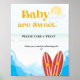 Baby beach surfing board baby shower Favour sign
