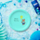 Bunting flags with cute baby bear boy with balloon and text WELCOME BABY BOY