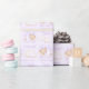 Welcome baby girl wrapping paper with a cute baby Bear. The soft pastel purple / lavender, ivory and beige colours with a cute sleeping baby bear on the clouds with the balloons is just so adorable for a newborn baby girl. Easily personalise all the text. - Kate Eden Art