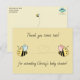An adorable twin boy & girl baby bee thank you design. This postcard depicts a two baby bees in blue with room to say a quick thank you on the back. Copyright by Night Owl's Menagerie, 2018.