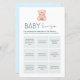 This is a charming "Baby Items" bingo activity, perfect for baby showers. At the top, a sweet, teddy bear icon instills a sense of gentle warmth. Below the bear, the title is written in a soft, welcoming font, inviting guests to participate in the bingo game. This bingo sheet is an engaging and interactive way to enhance the joy and excitement of a baby boy shower, encouraging guest participation and adding fun to the party.
