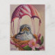 Baby Bird Fledgling Pink Parachute Watercolor Art Postcard