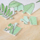 This jigsaw is decorated with watercolor jungle leaves and a smiling baby sloth.