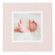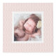 Display four of your favourite newborn photos in chic style with our subtly patterned photo cube. Design features an elegant pastel blush pink trellis pattern surrounding each of your baby girl's photos. Personalise the top panel with her name and birth stats (date of birth, weight and length).