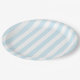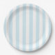 Baby blue and white striped paper plates. Available in a variety or shapes and sizes.
