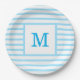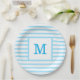 Baby Blue and White Stripes Custom Monogram Paper Plate