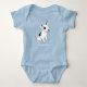 Baby blue body suit with white bull terrier pup bodysuit