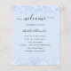 A baby blue background decorated with confetti, sparkles. Personalise and add your names and wedding details. Black coloured letters. If you have more text it's possible to reduce the line space.