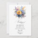 This wedding invitation features a delicate blend of baby blue, buttercream yellow, and pastel pink florals, creating an ethereal and romantic design. The soft pastel hues bring a timeless elegance, perfect for couples seeking a subtle yet sophisticated touch for their special day. The intricate floral patterns add a charming and whimsical feel, making this invitation an ideal choice for a spring or summer wedding.