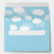 Baby blue envelope with a lovely white clouds on blue liner. Matching Baby Shower Invitation, RSVP Response Card, Thank You Note Cards and Stickers and Words of Advice Postcard Card or Card, Bring a Book Request Card, Return Address Labels, Clouds Stationary and Envelope with matching liner and Blank Note Cards can be found here: