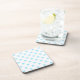 Baby blue cross stitches on white coaster
