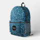 Baby blue faux glitter sparkles Monogram Printed Backpack. Cool fashion accessory bag for her. Beautiful girly glamourous light blue shiny glitters sparkles design. Photo of sparkles, not real glitter! Create a unique and personalised backpack with a custom touch! Modern monogram with your initial and your name for that extra personal flair.