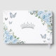 Coordinate your party with this elegant personalised Guest Book! Personalise it easily and quickly, simply click the customise it further button to edit the texts, change fonts and fonts colours. Featuring pretty pastel baby blue flowers, delicate greenery and blue and silver butterflies. Great for Quinceañera, Sweet 16, bridal shower, debutante ball, birthday and many more occasions. Matching items available in store. (c) Somerset Fine Paperie