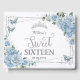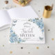 Baby Blue Floral Butterflies Silver Sweet Sixteen Guest Book