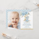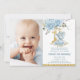 Baby Blue Floral Cute Elephant 1st Birthday Photo Invitation