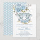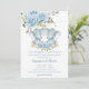Baby Blue Floral Cute Elephants Twins Baby Shower Invitation