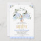 Baby Blue Floral French Peter Rabbit Baptism Invitation