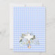 Sweet bunny themed christening invitation for a little boy featuring a cute Peter Rabbit illustration, various baby blue floral arrangements, blue plaid pattern, and faux gold glitter dots and heading. This design is ideal for someone looking for a little boy's Peter Rabbit themed christening invitation.