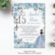 Soft Baby Blue Floral Silver Quinceanera Birthday Designed by The Happy Cat Studio